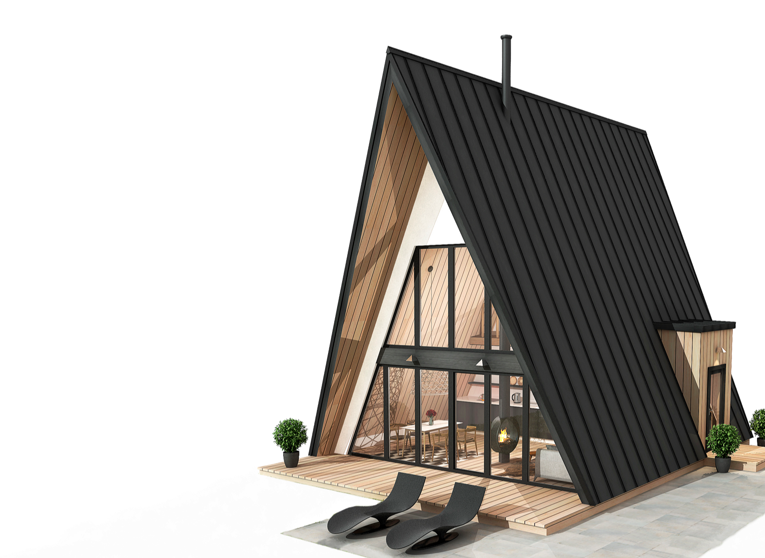 “Сегодня на пике моды ― здания нестандартной формы. Один из таких вариантов ― дом А-фрейм. Его название происходит от английского «A-frame» (frame ― рама). Это дом, форма которого напоминает букву «А». Иначе А-фрейм называют «дом-шалаш», «дом-палатка». Он и правда напоминает палатку, только надёжную, комфортную и со всеми удобствами."